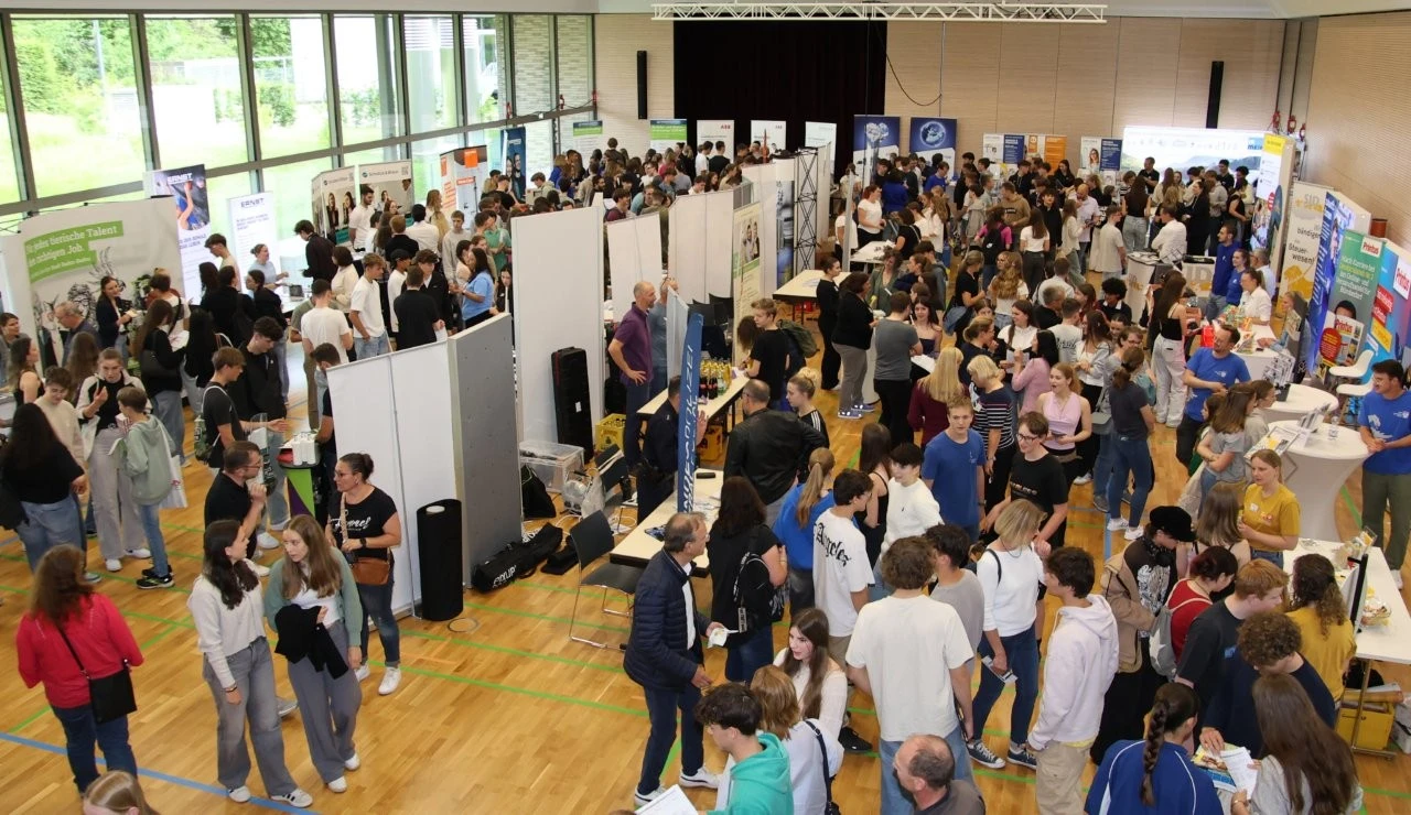 Die Premiere „LenderConnect“ am Lender-Gymnasium war ein voller Erfolg, denn die Fachschaft Wirtschaft um die Initiatoren Wolfram Ehmann und Dr. Cornelia Lehmann-Waffenschmidt konnten über 50 Unternehmen, Betriebe und Dienstleister aus der Region gewinnen und die Resonanz unter den Jugendlichen war enorm. „Wir werden das jetzt jährlich veranstalten“, meinte Schulleiter Marco Cataldo der sich begeistert und dankbar angesichts des tollen Erfolgs zeigte. Das Kultusministerium schreibe den Schulen vor, mindestens eine Bildungspartnerschaft mit einem Unternehmen einzugehen, um die Schüler auf die Berufs- und Studienwelt vorzubereiten. „Wir haben mit LenderConnect gleich 50 Bildungspartnerschaften geschlossen“, betonte der Schulleiter, der sich darüber umso mehr freute, weil die Premiere im 150. Jubiläumsjahr der Lender stattfand.
