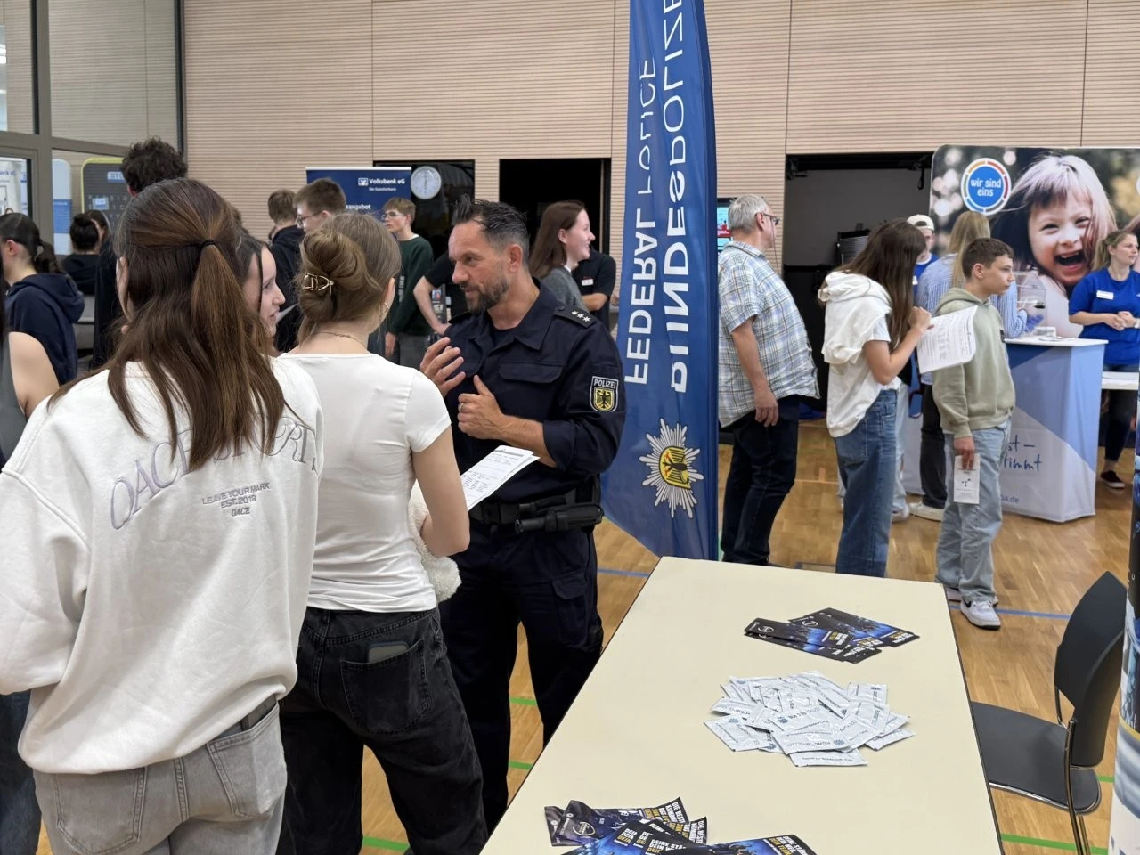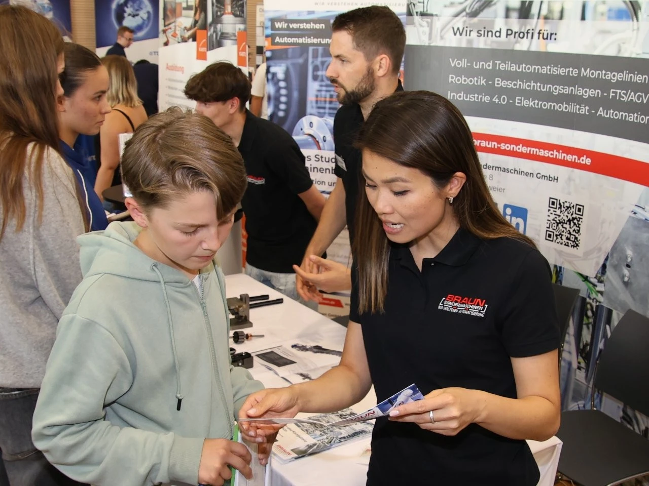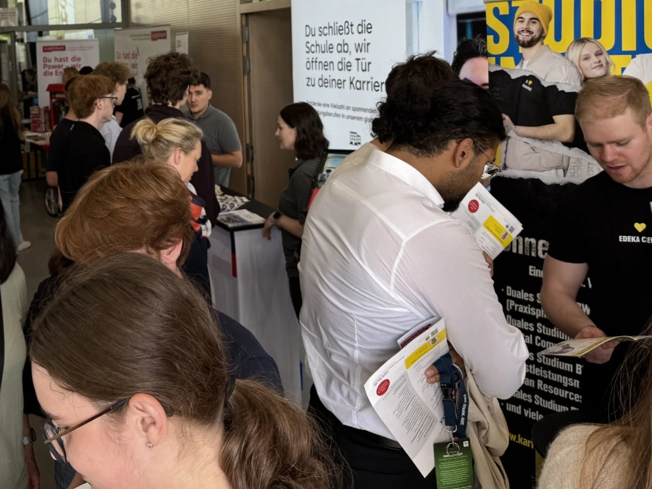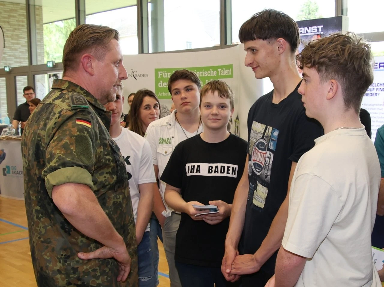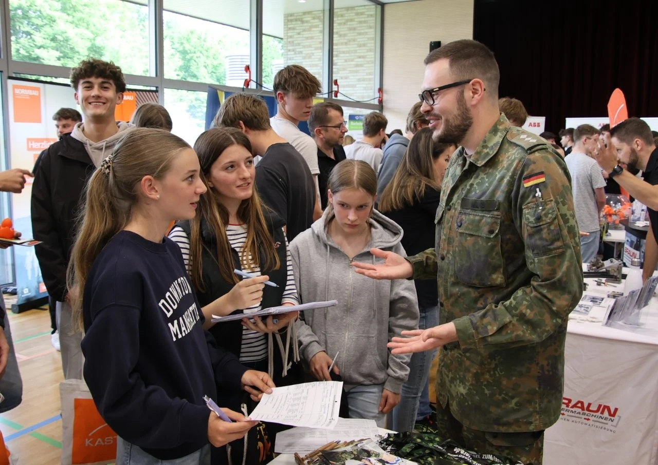 Die Werbeslogans der Aussteller bei der Berufs- und Studienmesse „LenderConnect“ übertrafen sich gegenseitig: „Du hast die Power, wir haben die Energie“, „Amtlich was bewegen in the Länd“, „Mach was wirklich zählt! Geh zur Bundeswehr“. Ob diese und andere originelle Slogans wie „Für jedes tierische Talent den richtigen Job“ tatsächlich die jugendliche Zielgruppe der künftigen Berufs- und Studienanfänger trafen, ließ sich nur vermuten und vielleicht an den „Schülertrauben“ an verschiedenen Infoständen ablesen. „Wir verzeichnen aktuell ein zunehmendes Interesse von Jugendlichen an der Bundesweher“, meinte Stabsfeldwebel Daniel Kupfer, dessen Stand permanent von interessierten Mädchen und Jungen umringt war. „Die Bundeswehr bietet eben auch attraktive Ausbildungen und Studiengänge“, so Kupfer.