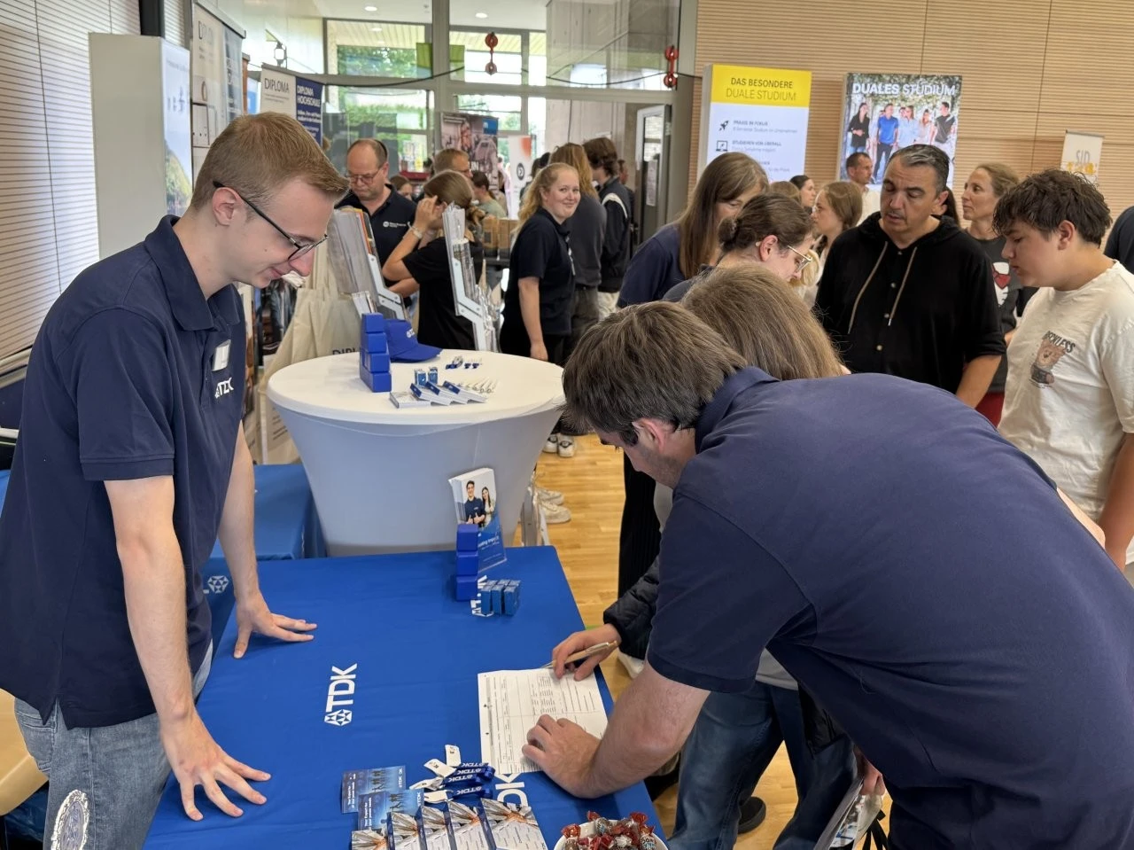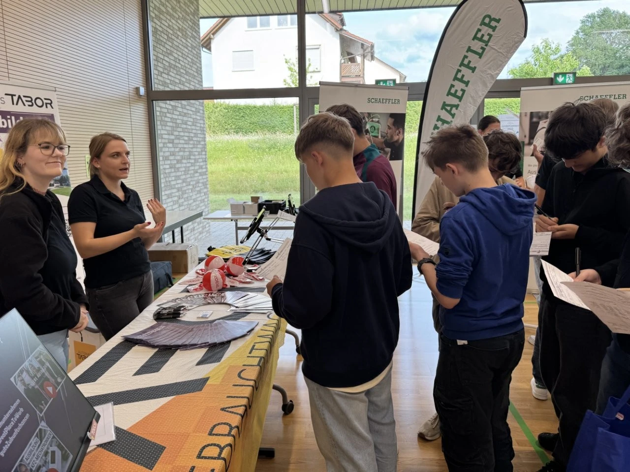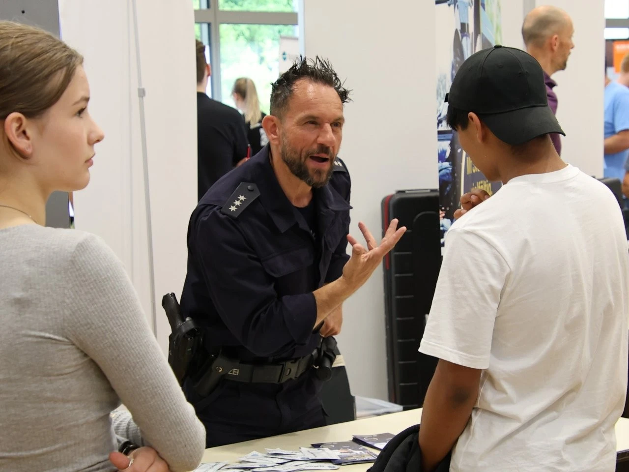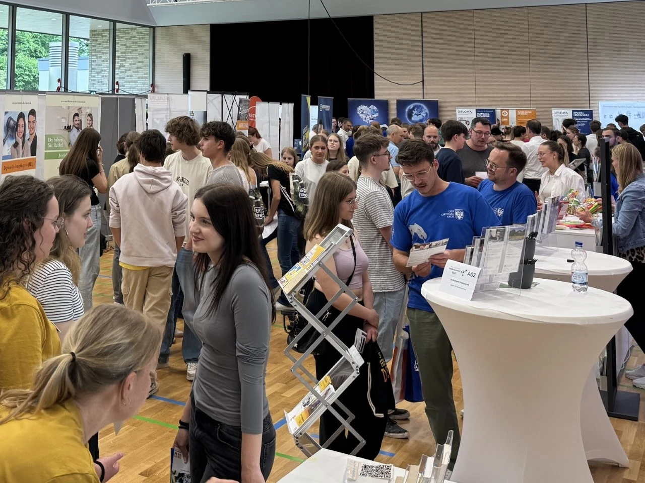 Die Werbeslogans der Aussteller bei der Berufs- und Studienmesse „LenderConnect“ übertrafen sich gegenseitig: „Du hast die Power, wir haben die Energie“, „Amtlich was bewegen in the Länd“, „Mach was wirklich zählt! Geh zur Bundeswehr“. Ob diese und andere originelle Slogans wie „Für jedes tierische Talent den richtigen Job“ tatsächlich die jugendliche Zielgruppe der künftigen Berufs- und Studienanfänger trafen, ließ sich nur vermuten und vielleicht an den „Schülertrauben“ an verschiedenen Infoständen ablesen. „Wir verzeichnen aktuell ein zunehmendes Interesse von Jugendlichen an der Bundesweher“, meinte Stabsfeldwebel Daniel Kupfer, dessen Stand permanent von interessierten Mädchen und Jungen umringt war. „Die Bundeswehr bietet eben auch attraktive Ausbildungen und Studiengänge“, so Kupfer.