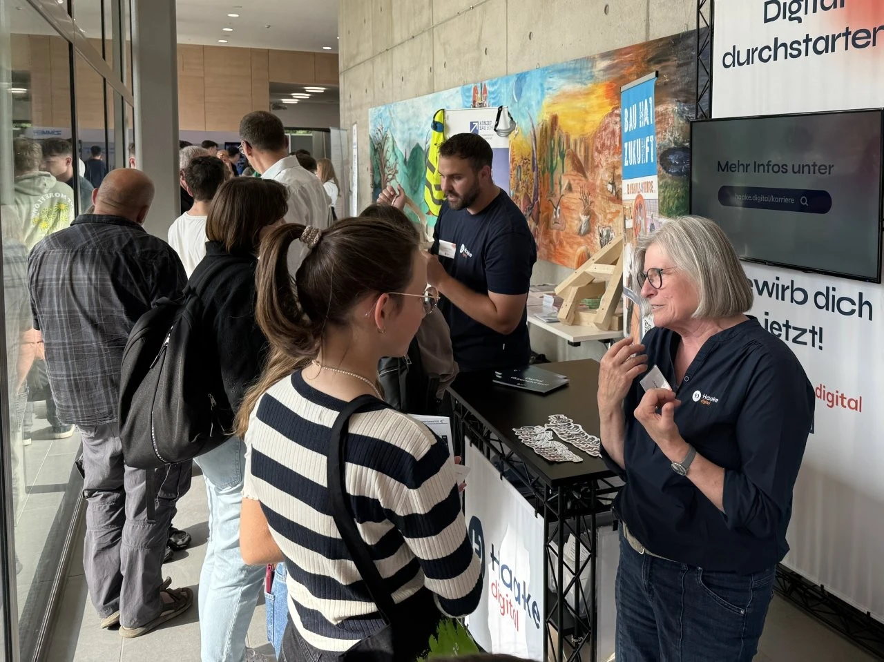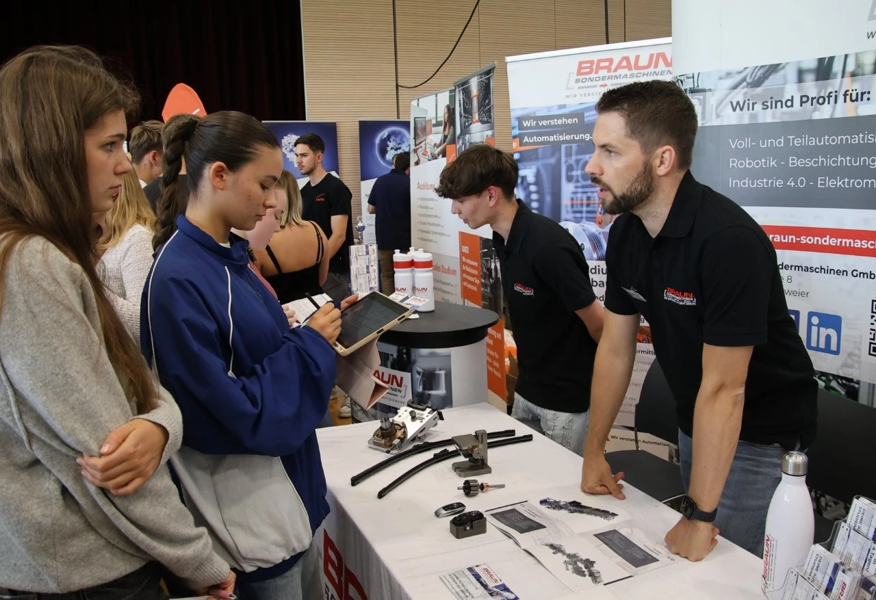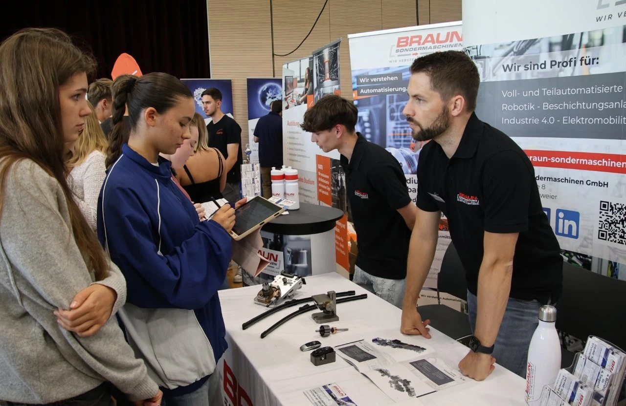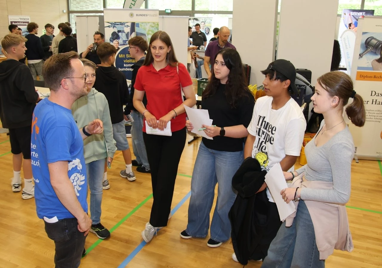 „Es gibt kein zu früh bei der beruflichen Orientierung“, meinte der Ausbildungsleiter vom Landratsamt, Bastian Oswald, als er mit Mia Hähnel besondere auch über das Duale Studium „Sozial Arbeit“ sprach. Die Schülerin hat zwar noch etwas Zeit bis zum Abitur, doch für sie war es wichtig, sich frühzeitig mit dem Thema Beruf und Studium auseinanderzusetzen. Dass bei der LenderConnect auch Berufe vorgestellt wurden, die wie der Beruf des Heilerziehungspflegers eher unbekannt sind, war am Stand der Diakonie Kork zu sehen. „Wir arbeiten mit Menschen mit Behinderung“, meinte Denis Arnold, der die Präsenz bei solchen Berufs- und Studienmessen als sehr wichtig ansah.