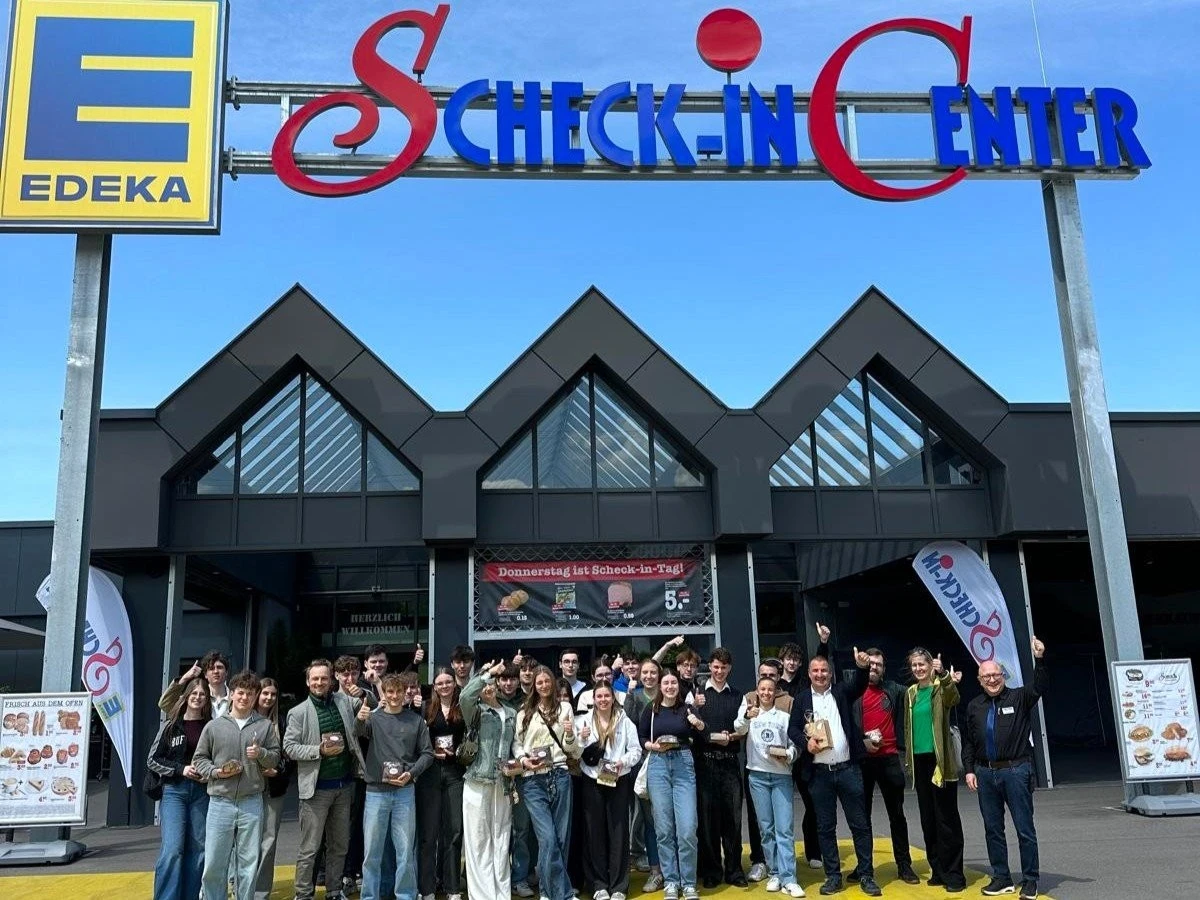 Am 9. Mai besuchten die Klassen J2.w1 und J2.w2 das Scheck-In-Center in Sinzheim zusammen mit Herrn Böhme, Herrn Weber und Frau Dr. Lehmann-Waffenschmidt.