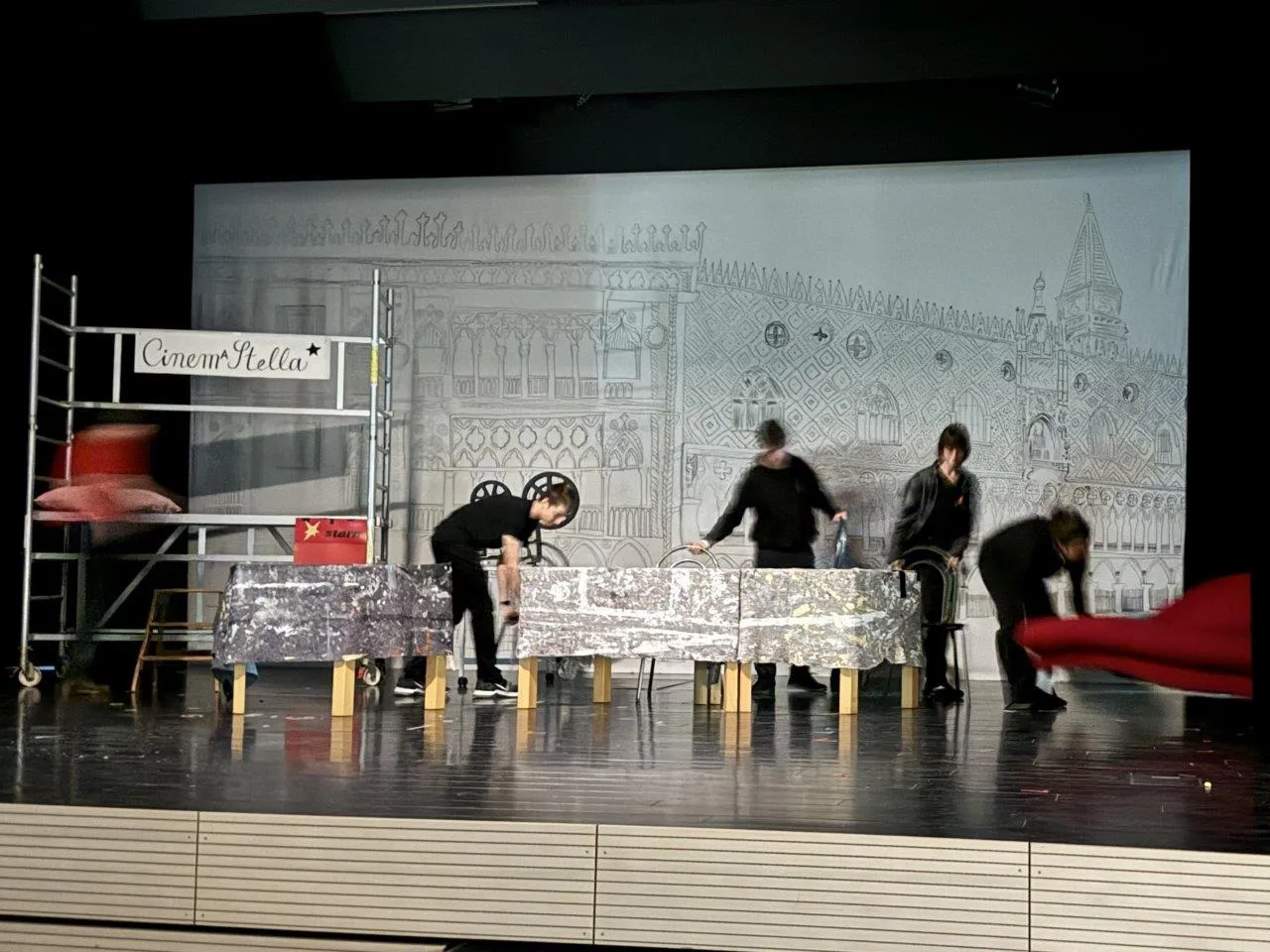 Es war ein fabelhaftes Zusammenspiel verschiedenster Künste und wunderbarer Tanzkunst zum Träumen, das es so an der Lender noch nicht gab. Die Hauptrolle spielte die Kinderbande um Anführer Scipio (Solveig Sonntag), der als „Herr der Diebe“ den Reichen von Venedig Angst und Schrecken einzujagen schien und mit Prosper (Letizia Serrer), Bo (Ruby Shevanny), Wespe (Charlotte Schmid), Riccio (Rosa Straub) und Mosca (Nikolina Sladakovič) Helfershelfer um sich scharte. Diese schleppten gehörige Pakete mit sich herum. Denn es waren Straßenkinder mit je eigenen Lebenserfahrungen, wobei Bo und Prosper nach dem Tod ihrer Mutter auf der Flucht vor Tante und Onkel (Sophie Jarosch und Abbygail Lipp) waren, die Prosper in ein Internat abschieben wollten. Nebenbei kam ans Tageslicht, dass Scipio ein heftiges Problem mit seinem Vater Barbarossa (Pares Masin) hat, das Diebesgut aus dem Elternhaus hat und ein ziemlicher Angeber war. Dann wurde es spannend, als sich Detektiv Victor Getz (Janik Wang) die kleinen Diebe ausfindig machte, Ida Spavento (Alisia Kimmig) ausgeraubt werden sollte und mysteriöse Figuren wie Der Conte (Lucian Magel) und Dr. Massimo (Lou Truisi) in einen sagenumwobenen hölzernen Flügel verstrickt werden. Der war das fehlende Teil, um das „magische Karussell“ zum Laufen zu bringen und Scipio war der Erste, der einstieg und endlich ein Erwachsener wurde.