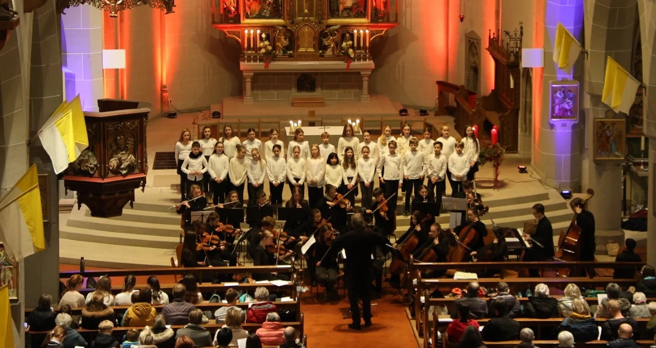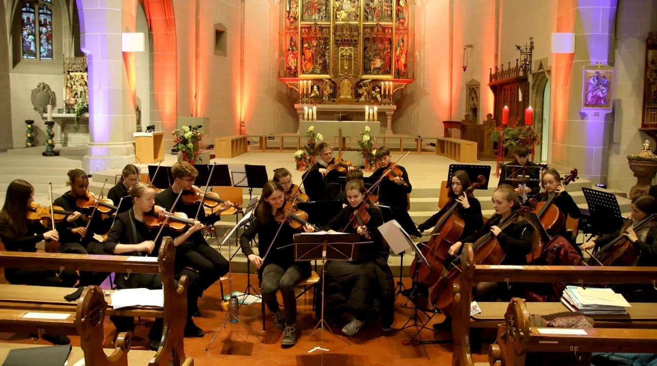 Das musikalische Sahnehäubchen des Festtages mit dem Freiburger Weihbischof Christian Würtz präsentierte am Abend die Heimschule Lender, die mit zwei Chören und einem Streichorchester nach Kappelrodeck kam und ein glänzendes Konzert darbot. Dabei war es sehr schön, wie die Lenderschüler mit Musik und Gesang eine adventliche Atmosphäre schufen, alt vertraute Weisen wie „O Heiland reiß die Himmel auf“ und „Es kommt ein Schiff geladen“ sangen und die Besucher zum Mitsingen einluden. So wurde der Raum der Nikolaus-Kirche zu einem wohltuenden Ort, an dem in den Liedern die uralte Sehnsucht der Menschen nach Hoffnung, Frieden und Gerechtigkeit zum Klingen kam. Dazu haben die Chöre (Unterstufenchor & Jugendchor, Leitung Christine Alshut) die Spur nach Weihnachten gelegt, als Lieder wie „Gesegnet sei die Heilige Nacht“ oder „Ich steh an deiner Krippe hier“ erfreuten und die „Weihnachtsglocken“ erklingen ließen. Einen glänzenden Part spielte das Streichorchester (Leitung Ulrich Noss), das im Januar beim Händel-Jugendpreis-Tradition der Lender fortsetzen möchte. Im „Achertäler Dom“ überzeugte die Musiker mit einem feinen, nuancierten Klangbild, als das Weihnachtskonzert für Streicher und Cembalo von Arcangelo Corelli und der 2. Satz von Johann Sebastian Bachs Violinkonzert in g-Moll (Solistin Solveig Sonntag) aufgeführt wurde. Mit viel Gefühl und wunderbarer Stimme sorgte Norah Kromer mit „Maria durch den Dornwald ging“ für eine besondere Note des Konzertes.