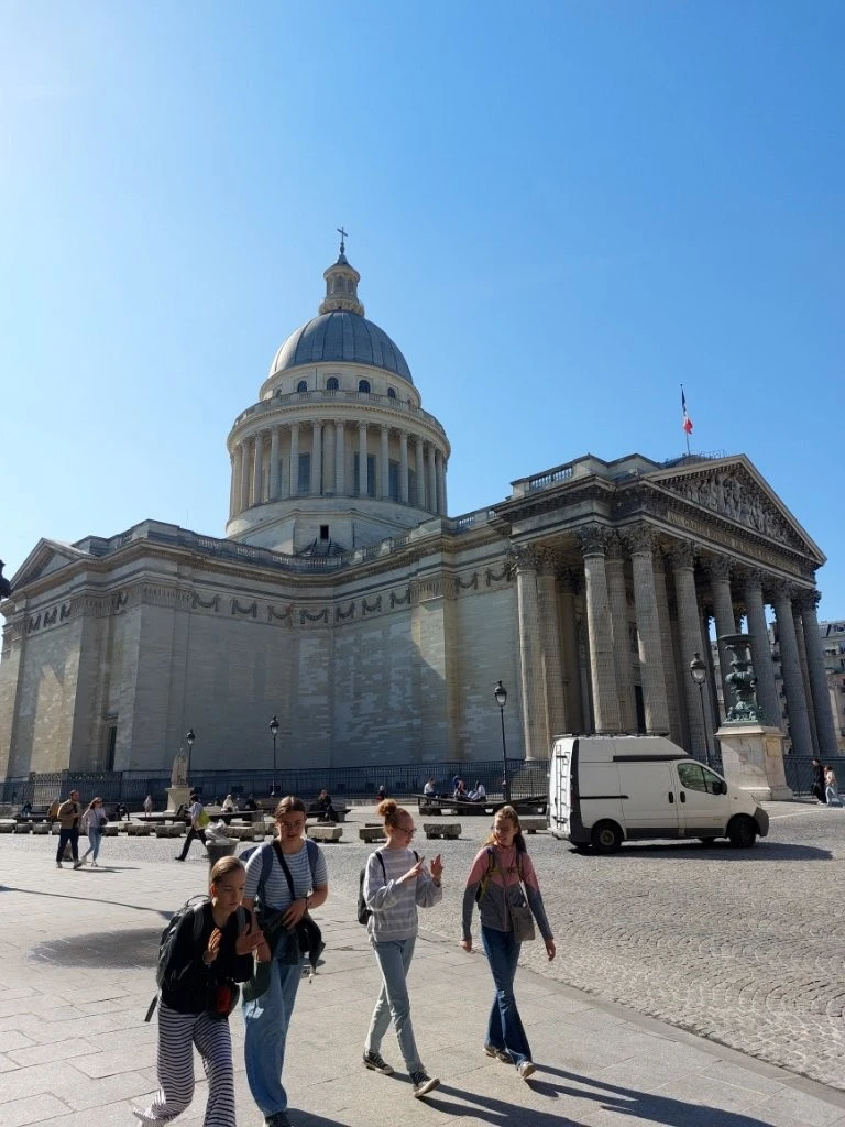 … nous avons commencé la journée en prenant le métro jusqu’à Châtelet avant de visiter les Galeries Lafayette, un grand magasin de luxe avec une coupole en verre et des papillons suspendus. Ensuite, nous sommes passés devant le Louvre sans y entrer, puis nous avons fait une petite pause dans le jardin des Tuileries avant de continuer notre promenade vers la Place de la Concorde. Après cela, nous avons pris le métro pour aller à l’Arc de Triomphe, que nous avons monté jusqu’au sommet pour admirer une vue magnifique sur Paris et la Tour Eiffel. En fin de journée, nous sommes retournés à l’école et chacun est reparti chez son correspondant.