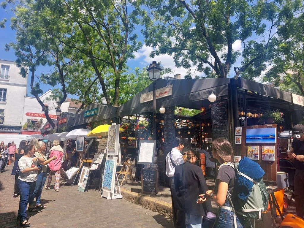 Am Ende der Freizeit haben wir uns am vereinbarten Treffpunkt wieder getroffen und sind mit der Metro in das Viertel Montmartre gefahren. Nachdem alle ein paar Fotos gemacht hatten, hatten wir noch eine Stunde zusätzliche Freizeit. Wir sind ein wenig durch die Straßen gelaufen und haben uns in den Schatten gesetzt, weil es sehr heiß war.