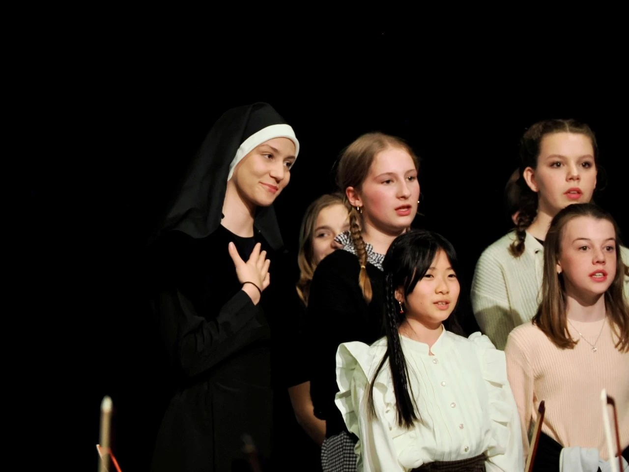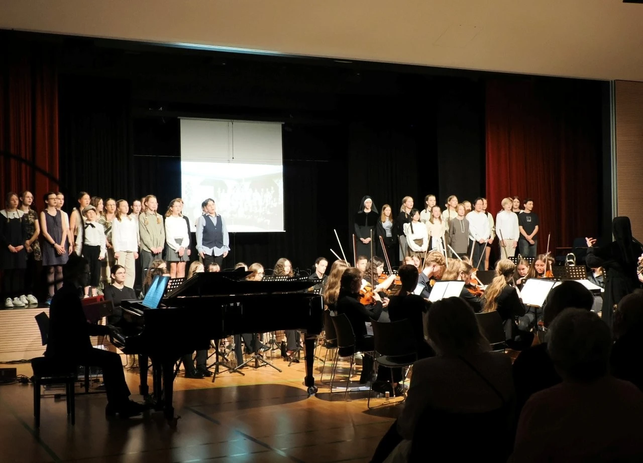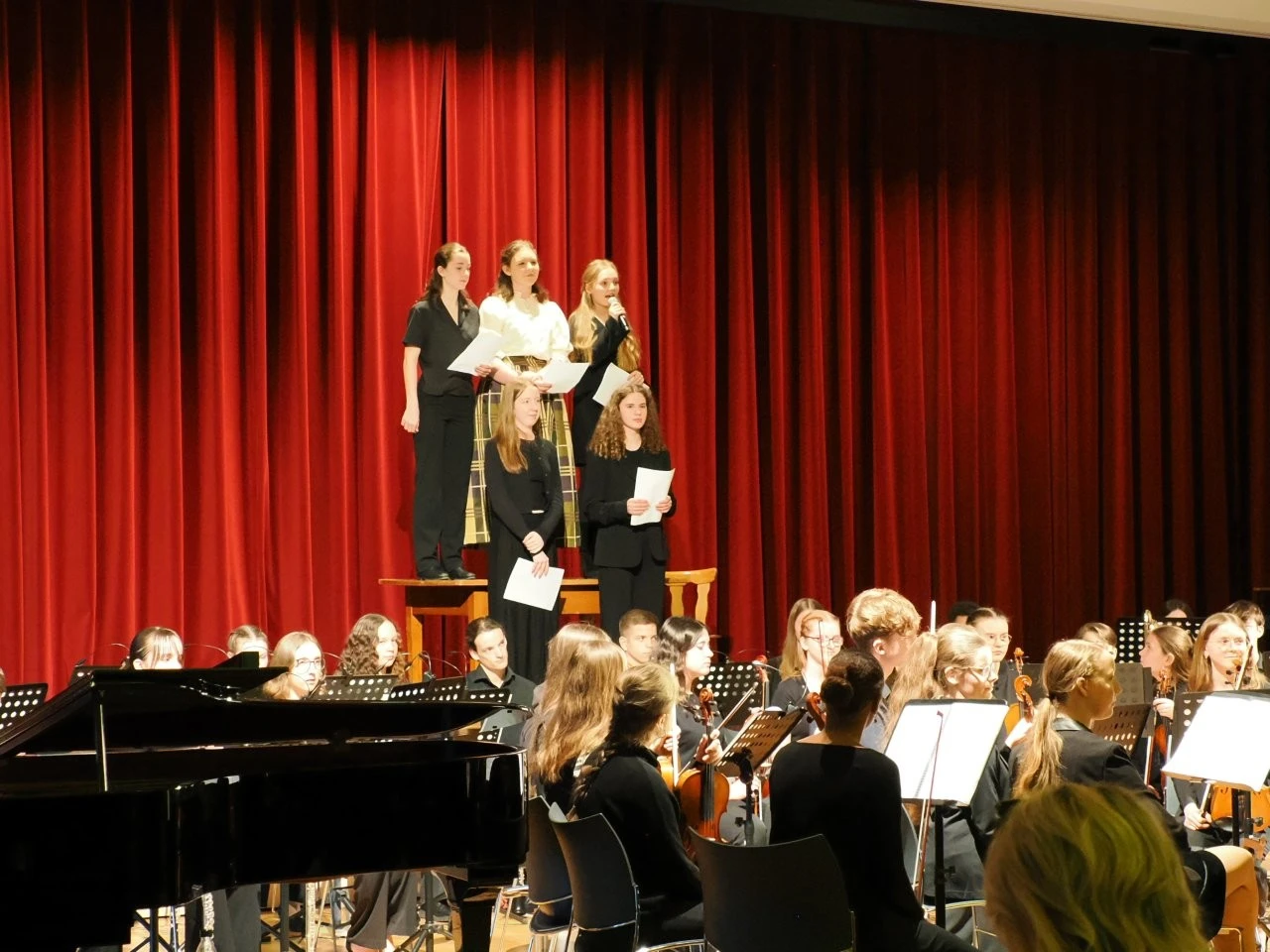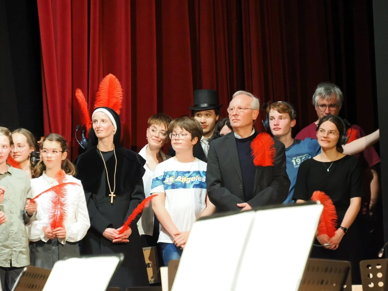 „Du liebst Musik, spielst ein Instrument und kannst neue Ideen entwickeln, um Musik lebendig auf die Bühne zu bringen?“ Die Schülerinnen Felia Conrad, Rahel Herrlich, Fanny Krämer und  Johanna Münchenberg nahmen diese Einladung des Deutsche Jugendorchesterpreises von „Jeunesses Musicales“ an, bildeten mit Musiklehrer Ulrich Noss eine Orga-Team und starteten ein einzigartiges Projekt, das über acht Monate hinweg neben dem Unterricht lief. Die Vorgabe des Wettbewerbes lauteten, von der Idee bis zur Aufführung schlichtweg alles selbst auf die Beine zu stellen, sich erfahrene Partner an die Seite zu stellen und Sinfonieorchester, Jugendchor, Schauspieler, Zeitzeugen sowie Arbeitsgemeinschaften für das Bühnenbild, die Kostüme und die Veranstaltungstechnik zu motivieren und einzubinden.