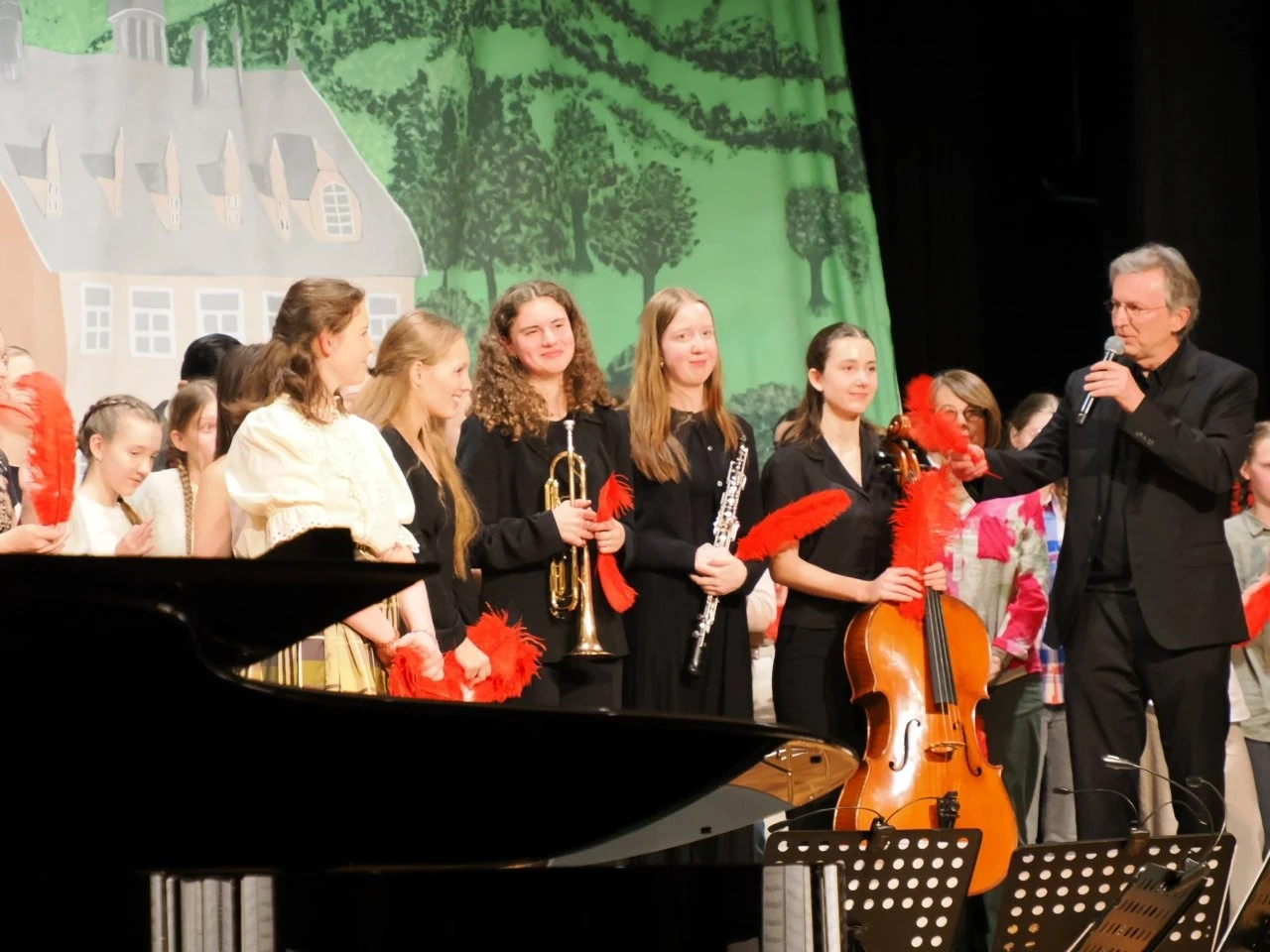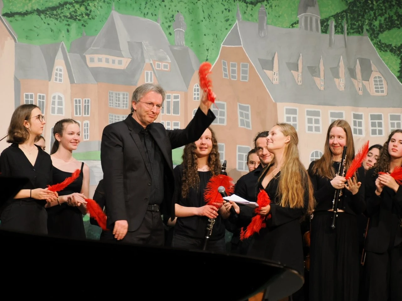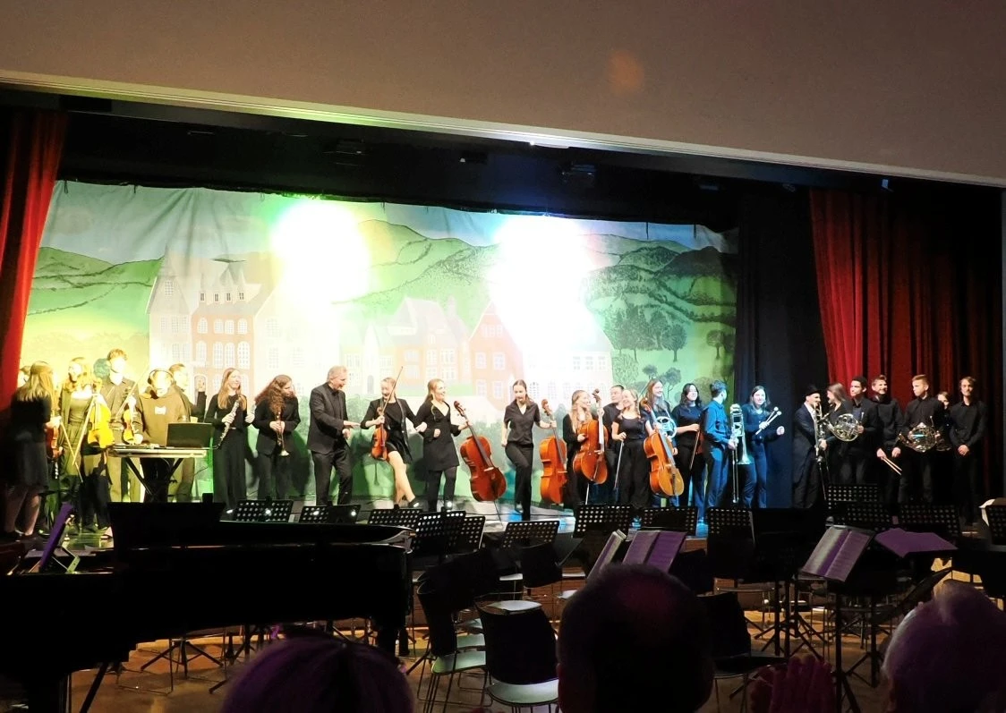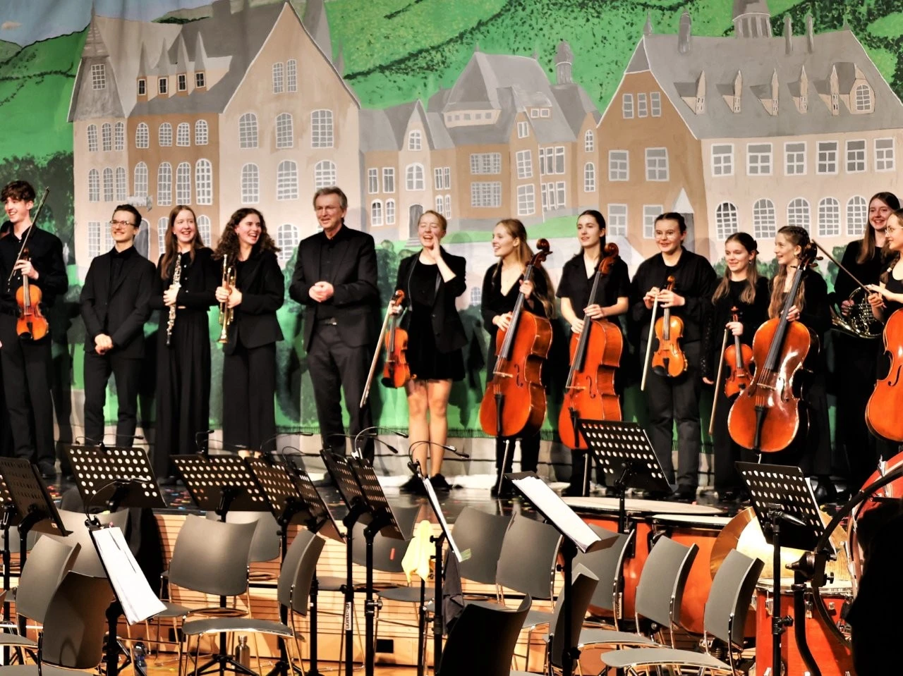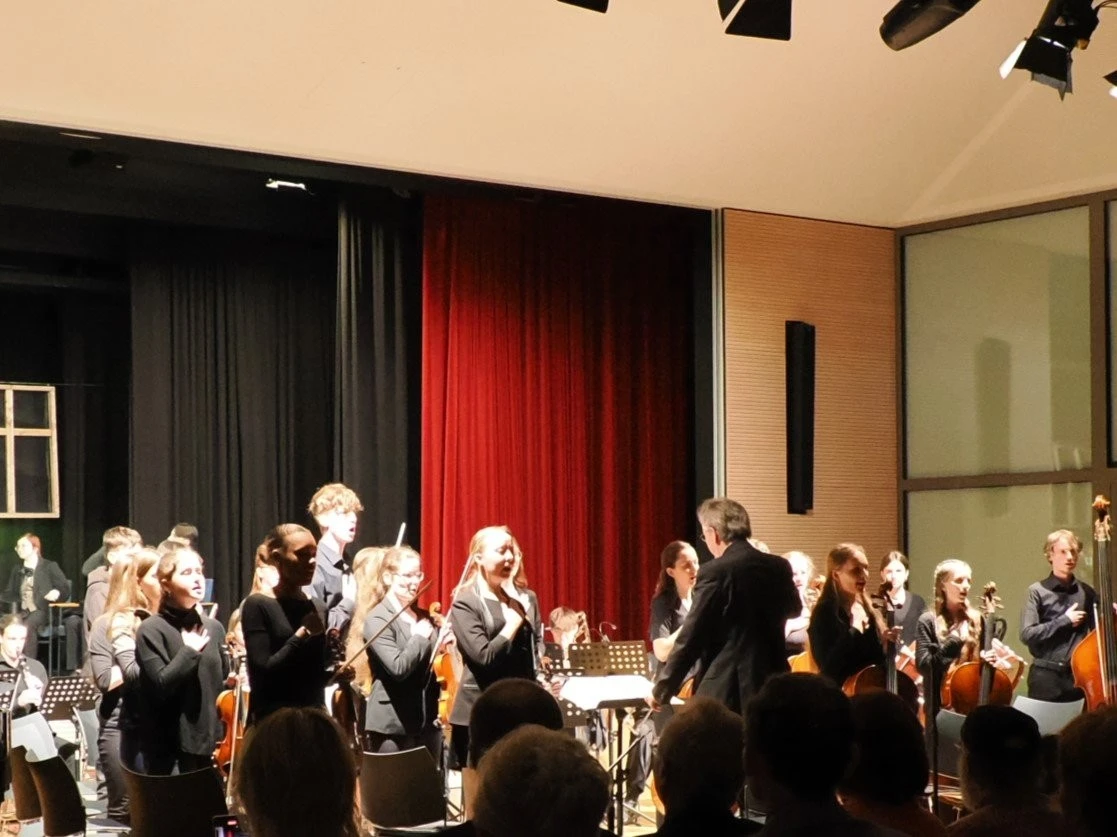 „Es war ein brillantes Projekt“, schwärmte Ulrich Noss, der wie bei früheren Projekten den Schülern bei der Auswahl der Musikstücke und der Inszenierung freie Hand ließ, aber als Experte jederzeit für die Schüler ansprechbar war und die sorgsam ausgewählten und anspruchsvollen Werke mit dem Sinfonieorchester einstudierte.