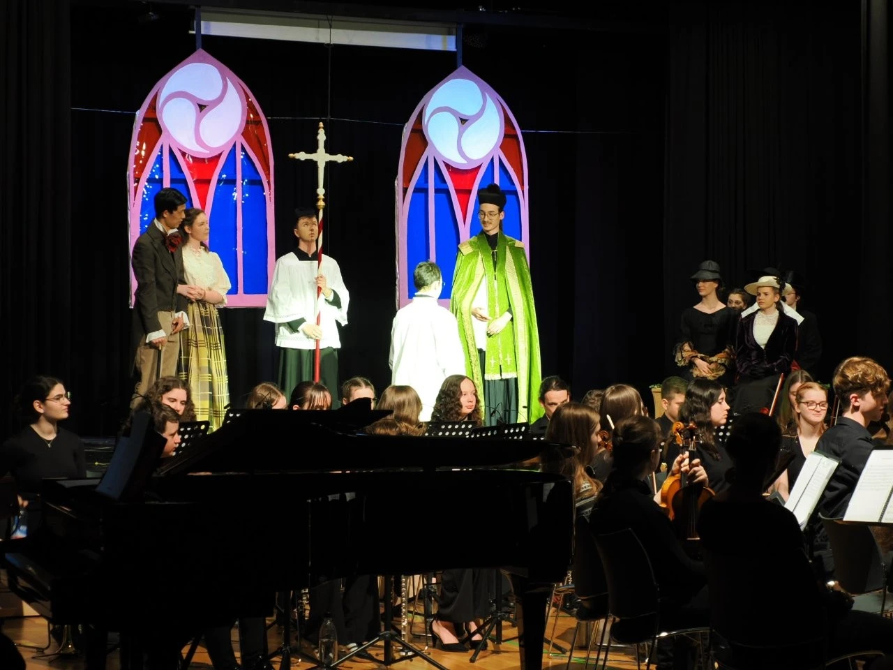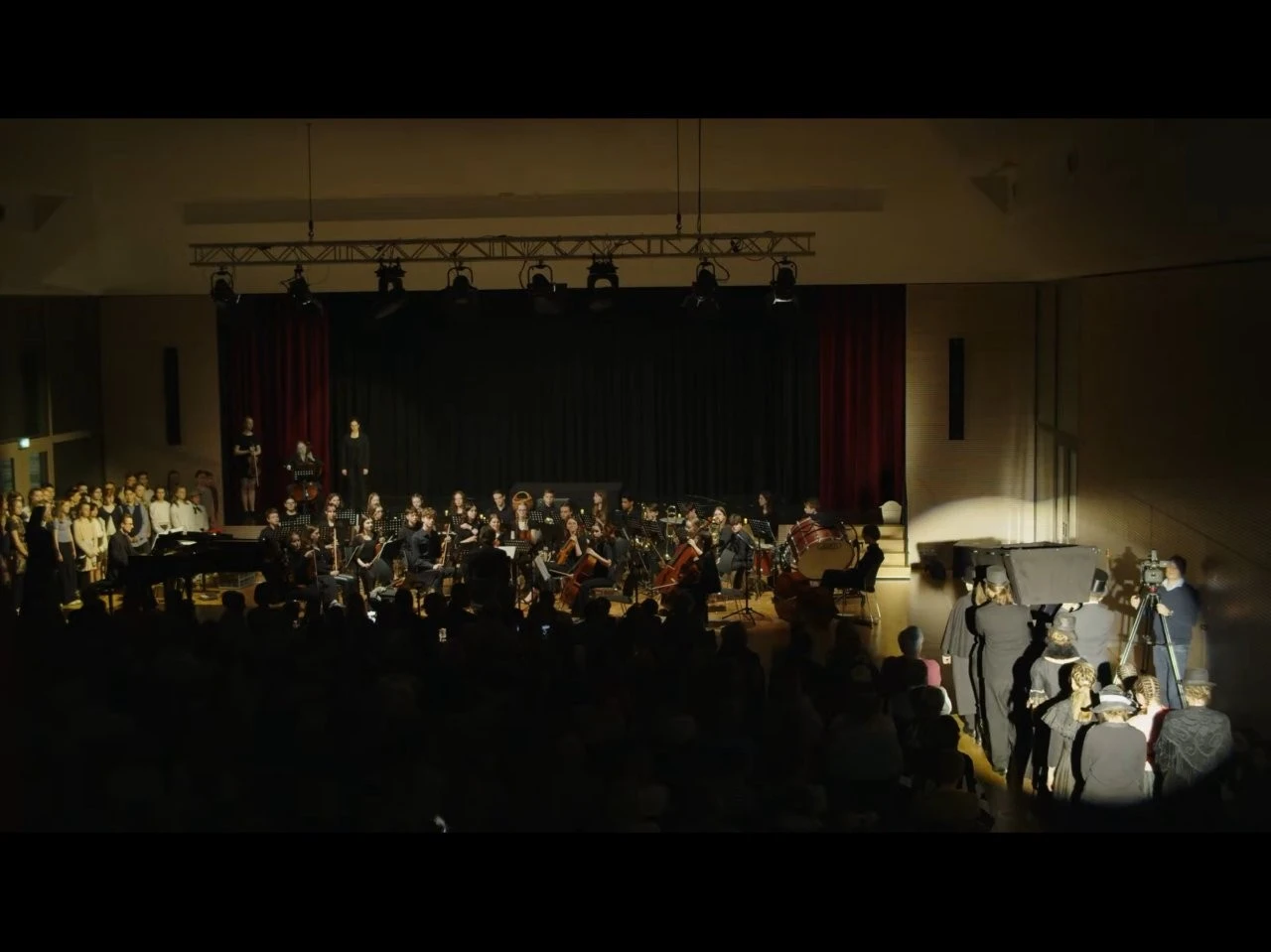 Die organisatorischen, kreativen und inhaltlichen Fäden liefen bei Felia Conrad zusammen, die auch das Skript schrieb und mit Clara Kachel voller Ideen, sehr versiert und mit viel Herzblut Regie führte. Darüber hinaus waren viele Schüler, Lehrer und Altsasbacher beteiligt, die Kostüm-, Bühnenbild- und Veranstaltungstechnik-AG´s, der Jugendchor (Leitung Christine Alshut) und besonders das Sinfonieorchester, das den Hauptpart spielte und dazu sein breites Repertoire an Möglichkeiten mit Werken von Bizet, Schubert und Grieg präsentierte. Diese waren so ausgewählt, um die Zeit von Franz Xaver Lender (1830 – 1913) zum Klingen zu bringen und etwa mit dem „Heckerlied“ der 1848er Revolutionäre und dem „Badnerlied“ im Landtages auch deutlich zu machen, dass Lendermusiker auch Qualitäten als Männerchor und Blasorchester haben. So war die Musik das leitende Element des Projektes und des glänzend disponierten Orchesters, das bei den „Carmen-Suiten“ das imposante Klangbild eines sinfonischen Orchesters darbot und bei dem „Ave Maria“ (Solistin Nora Kromer) mit dem Jugendchor sehr einfühlsam die Trauer über den Tod Lenders einfing. Herzbewegend war die Szene mit der Aufnahme der Kinder in das von Lender gegründete Waisenhaus, als der Jugendchor Lieder aus dem Film „Die Kinder des Monsieur Mathieu“ sang, denen der Lehrer im Film wie Lender in Schwarzach ein würdevolles Leben eröffnete. Dieser unermüdliche Einsatz Lenders für Kinder, Bildung, Gerechtigkeit und Lebenschancen wurde entlang des Stückes sehr gut inszeniert und mit Zeitzeugen und Fotos unterlegt, bevor der rasante „Can Can“ vom Jaques Offenbach mit groovy Techno-Sound das 150. Jubiläum einläutete und Musiker, Schauspieler und Gäste fröhlich tanzte.