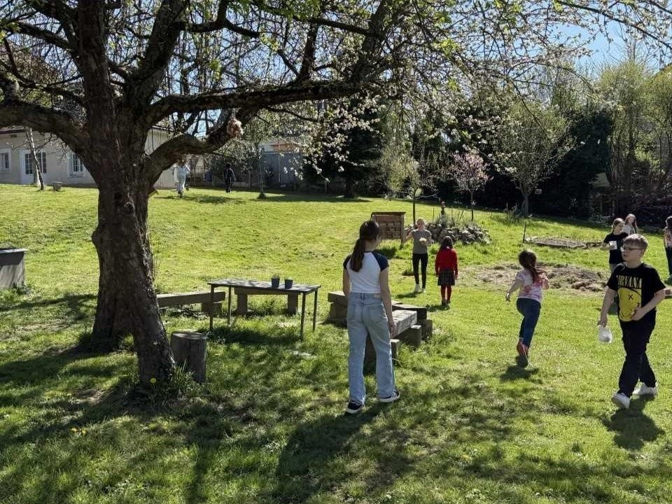 Danach ging es auf bunte Ostereiersuche in den Schulgarten. Zum Abschluss gab es ein gemütliches Picknick mit selbstgebackenem Kuchen, Äpfeln und jeder Menge guter Laune – ein perfekter Start in die Osterferien :)