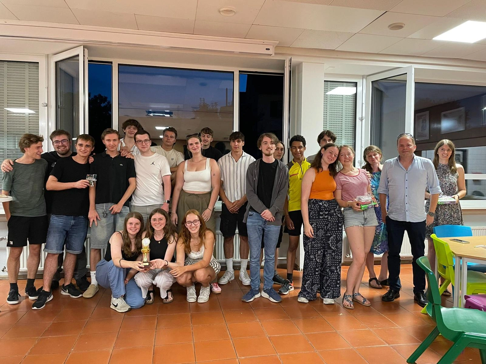 Direkt im Anschluss ging es am Abend mit dem Pub Quiz der Oberstufe weiter. Schon vor Beginn des Quizzes füllte sich der Raum bis auf den letzten Zentimeter. Es kamen nicht nur die Schüler, sondern auch eine Gruppe Lehrer und ehemalige Schüler, die sich dem Abend anschlossen. Das neue Format der Fragen würfelte die Chancen aller Teams neu. So gab es einen engen Kampf an der Spitze: Am Ende setzte sich das Team „Uniskipper“ durch – die ehemaligen Schüler! Aber auch der zweite Platz darf hier nicht ungenannt bleiben, da er erst nach einem Stechen errungen wurde vom Lehrerteam.