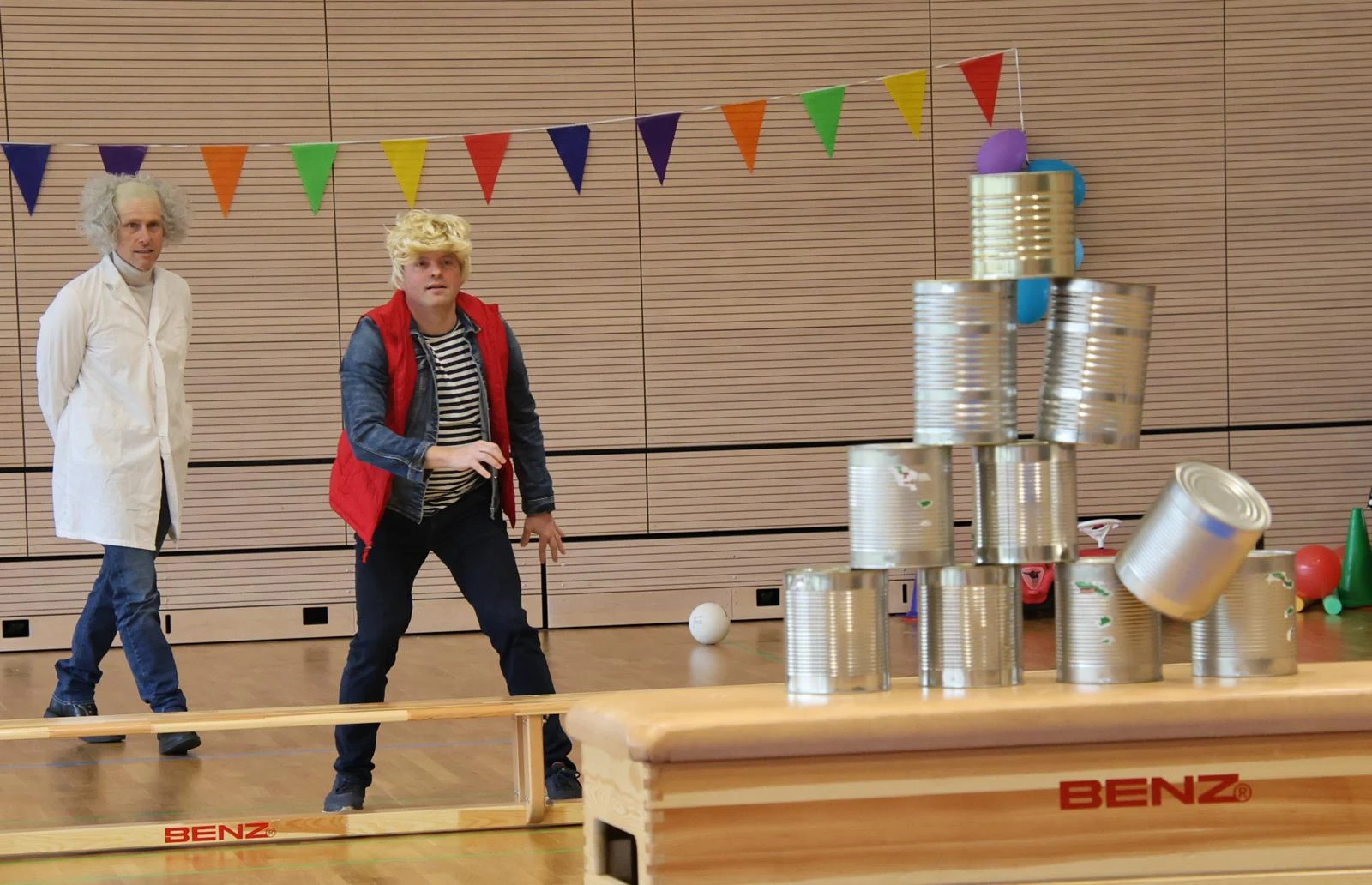 Die weiteren Highlights waren der Tanz der Lehrer*innen (Silke Würthner), der das Publikum zum Jubeln brachte sowie der Schulleitungsgag, bei dem sich die beiden „Chefs“ mit den Schülern in einem spannenden Wettbewerb gemessen haben. Den Abschluss machten traditionell die Lenderguggys, die die Menge noch einmal zum Beben brachten.