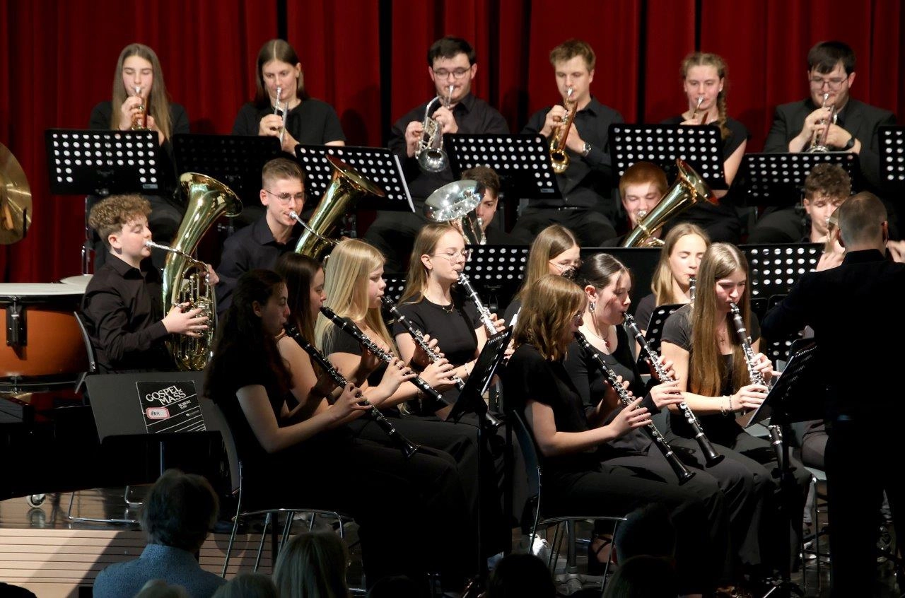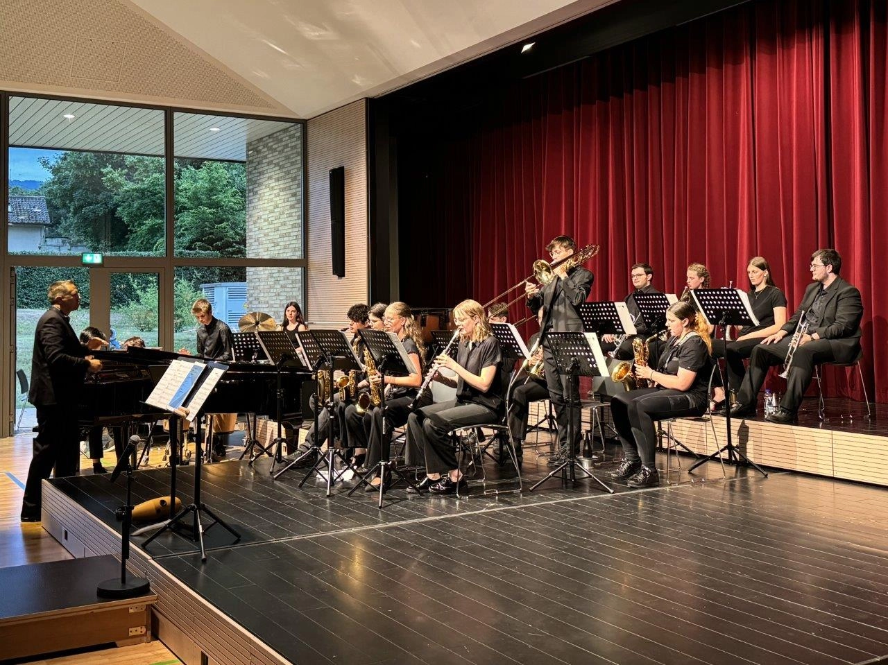 Ein Herzstück der Lender-Musik ist die sinfonische Blasmusik, was das Orchester mit 50 Jugendlichen unter der Leitung von Jürgen Bruder mit variationsreichen Klangfarben bestens belegte. Es war ein Genuss, das als „Oberstufe“ ausgewiesene Stück „Puszta“ von Jan Van der Roost mit vier feurigen ungarischen Tänzen zu erleben, die mit wechselnden Tempi und farbenreicher Instrumentierung hohe Anforderungen an die Musiker stellte. Nicht minder war dies bei der klangschönen „English Folks Song Suite“ mit typisch englischen Melodien zu hören, ebenso bei dem anspruchsvollen Werk „Morceau Symphonique“ mit dem Posaunisten Benedikt Kasper, der mit einem virtuosen Solo aufwartete. Die sinfonische Blasmusik bereitete vorzüglich die Bühne für die Bigband mit ihrem „Leader“ Stefan Nowak, die für ein groovendes Finale vom Feinsten sorgte.