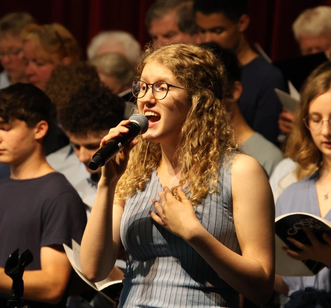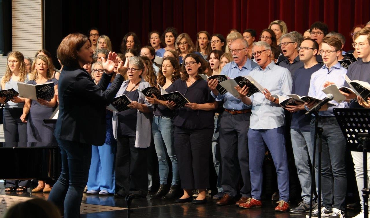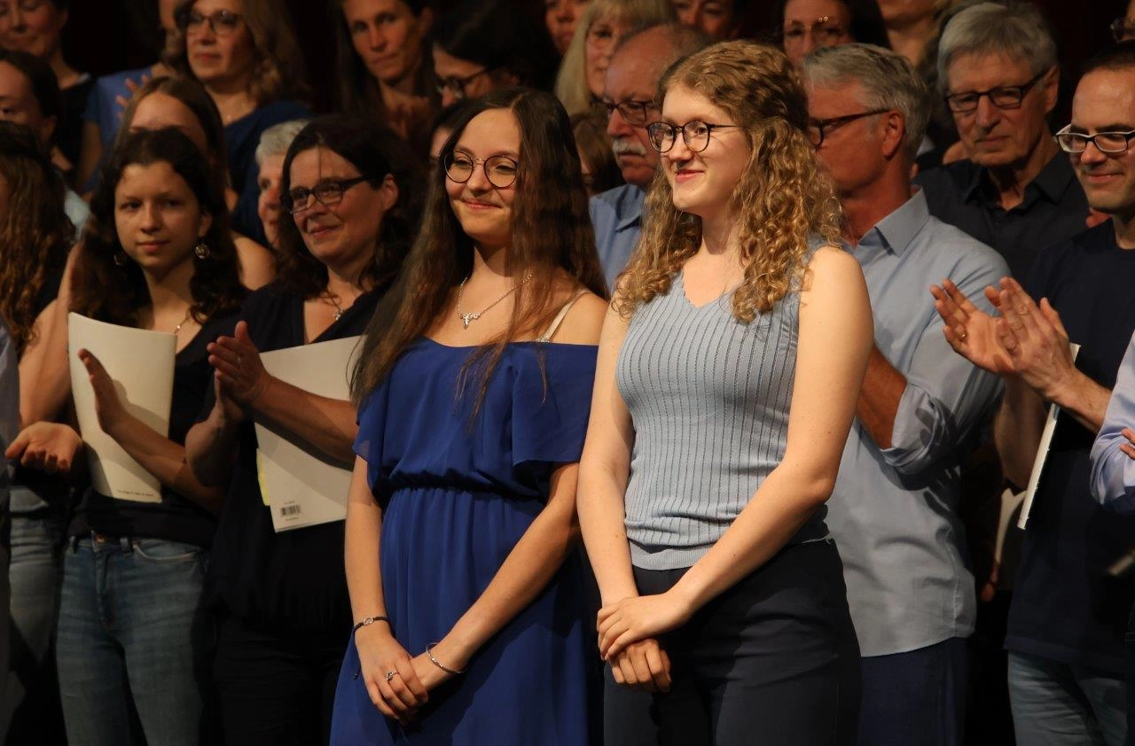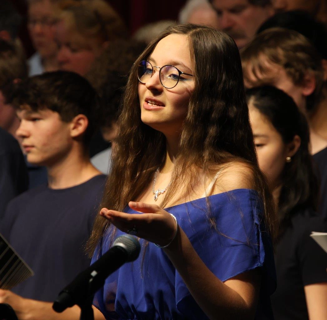 Der musikalische Bogen war nach der Begrüßung durch Ulrich Noss, weit gespannt und deshalb interessant für die Zuhörer, die zum Auftakt mit der „Gospel Mass“ von Robert Ray ein Glanzlicht des Abends erlebten. Aufgeführt wurde dieses moderne sakrale Werk mit jazzigen, afro-amerikanischen Rhythmen und mitreißenden Melodien von 100 Sängerinnen und Sängern des Mittel- und Oberstufenchores von Schülern und des Projektchores von Eltern, Lehrern und Freunden der Lender, die Leitung dieses wundervollen Chores hatte Ellen Krämer. Für den jazzigen Drive sorgten Stefan Nowak (Klavier), Luis Finkenbeiner (Drums) und Christian Vierling (Bass, während die Solistinnen Sophia Lugauer und Anna Stemmle mit ihren ausdrucksstarken und faszinierenden Stimmen der „Gospel Mass“ die Krone aufsetzen. Die imposante Klangfülle des Chores, die mitreißenden Melodien und der groovenden Sound der Combo formten sich zu einem musikalischen Kunstwerk, durch das der Lobpreis Gottes und die christliche Hoffnung wie im Kyrie zum Klingen kam: „Send uns den Retter, mach meine Seele frei, gib uns dein Wort und lehre uns beten.“