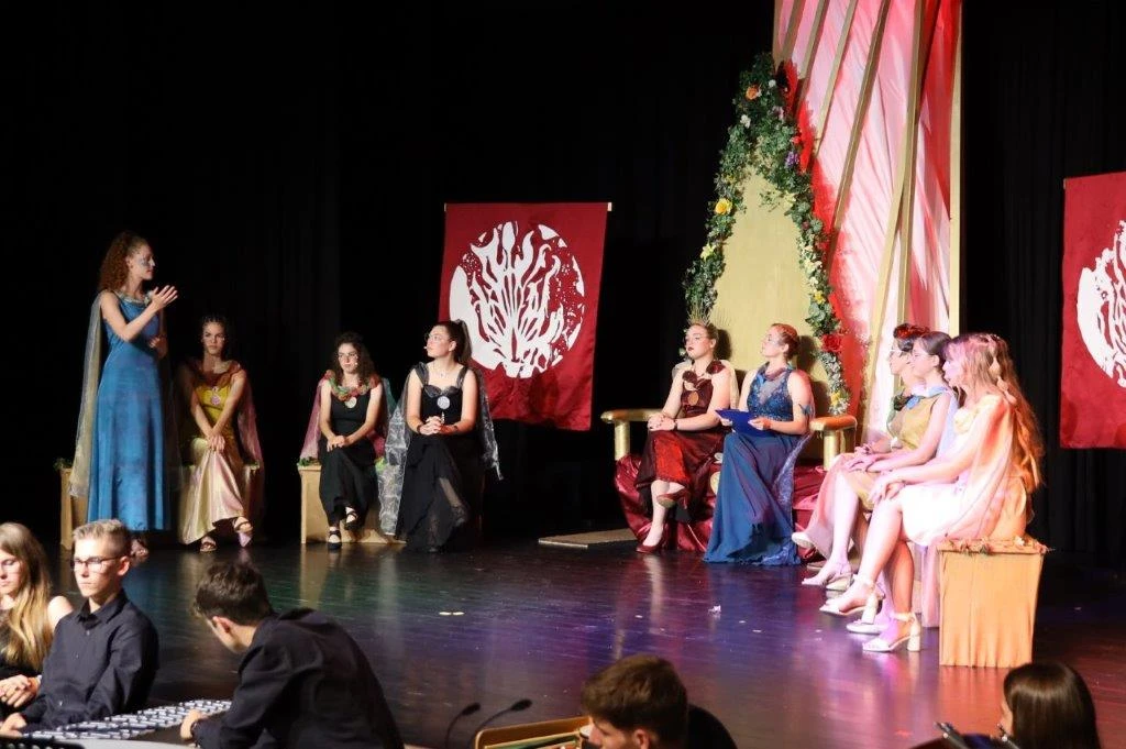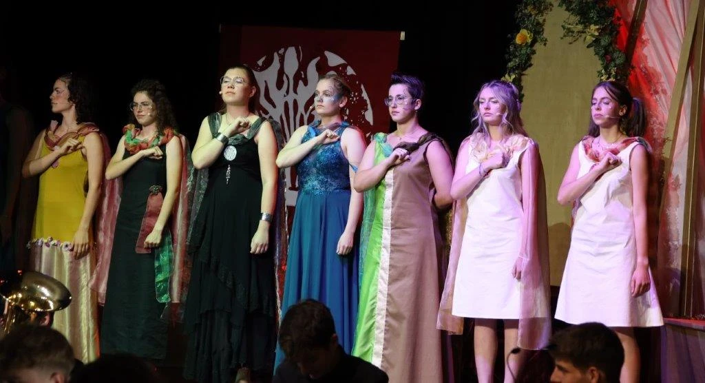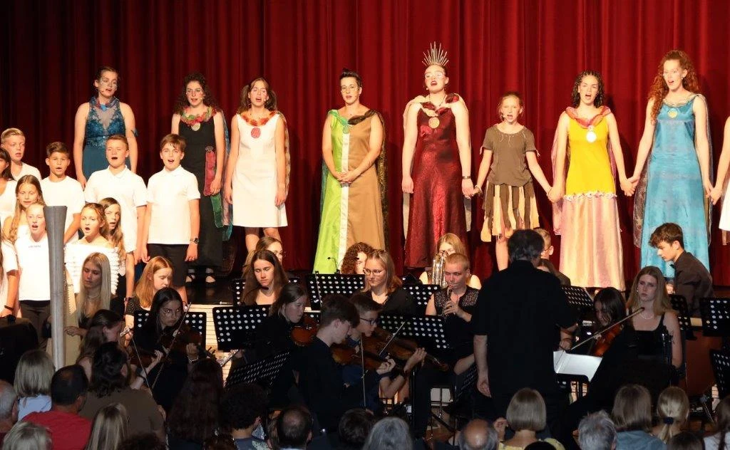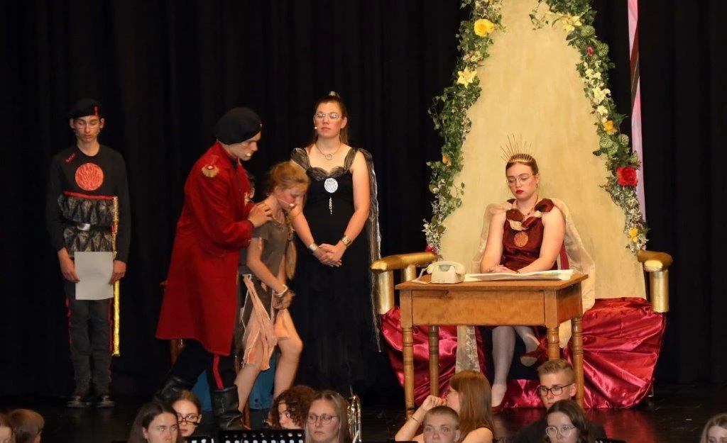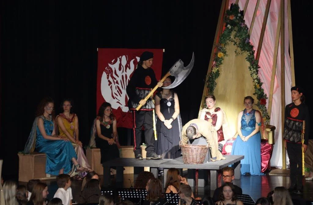 Nach vielen tollen Musical-Produktionen der Lender-Marke „selbstgemacht“ seit 2009 wurde die Erfolgsgeschichte mit einer famosen Komposition fortgesetzt, die eigentlich für den Wettbewerb 2020 konzipiert wurde. Doch Corona sah eine andere Regie vor, die fantastische Reise nach „Elysion“ musste auf Eis gelegt werde und konnte erst in diesem Schuljahr mit etwa 150 Akteuren um das Musical-Orchester neu belebt werden, dafür aber mit umso größerer Begeisterung und Spielfreude, weil Schüler endlich wieder auf der Bühne stehen und ihre Klasse im Komponieren, Texten und Musizieren präsentieren konnten. Mit viel Fleiß und Können zauberten die Schüler der Bühnenbild-AG (Leitung Eberhard Schreiber) die Kulissen für die „elysischen Gefilde“ auf die Bühne, während Tanja Esser mit Schülern der Kostüm-AG mit viel Kreativität dafür sorgte, dass die Darsteller gemäß ihrer Rolle edel, majestätisch, uniformiert und ärmlich in Szene gesetzt wurden. Mit Licht und Ton der AG Sound & Recording (Leiter Mathias Feigenbutz) formte sich das Musical zu einem kulturellen Kunstwerk und wundervollen Musical mit modernen und niveauvollen Werken von Steffen Weis, Jona Blasen, Nick Wlasow und Janik Wang. Feine Klangfarben spiele Jana Langhart auf ihrer Konzertharfe und erfreute mit virtuosem Spiel auf einem selten gehörten, aber sehr schönen Instrument.