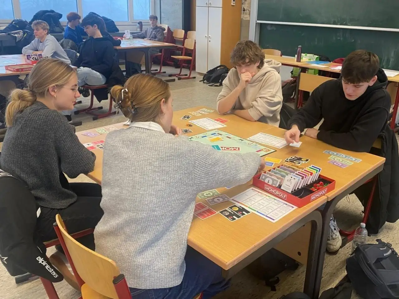 - Tische mit wirtschaftlich kreativem Namen waren von „Alles oder nichts“ über „Nutzenminimierer“ bis hin zu „Gold, Gold, Gold!!“ und „Überleben – hat nicht geklappt“. Mit letzterem müssen wir nochmal das Thema Vermögen vs. Schulden besprechen – da wurden insgesamt 2.195