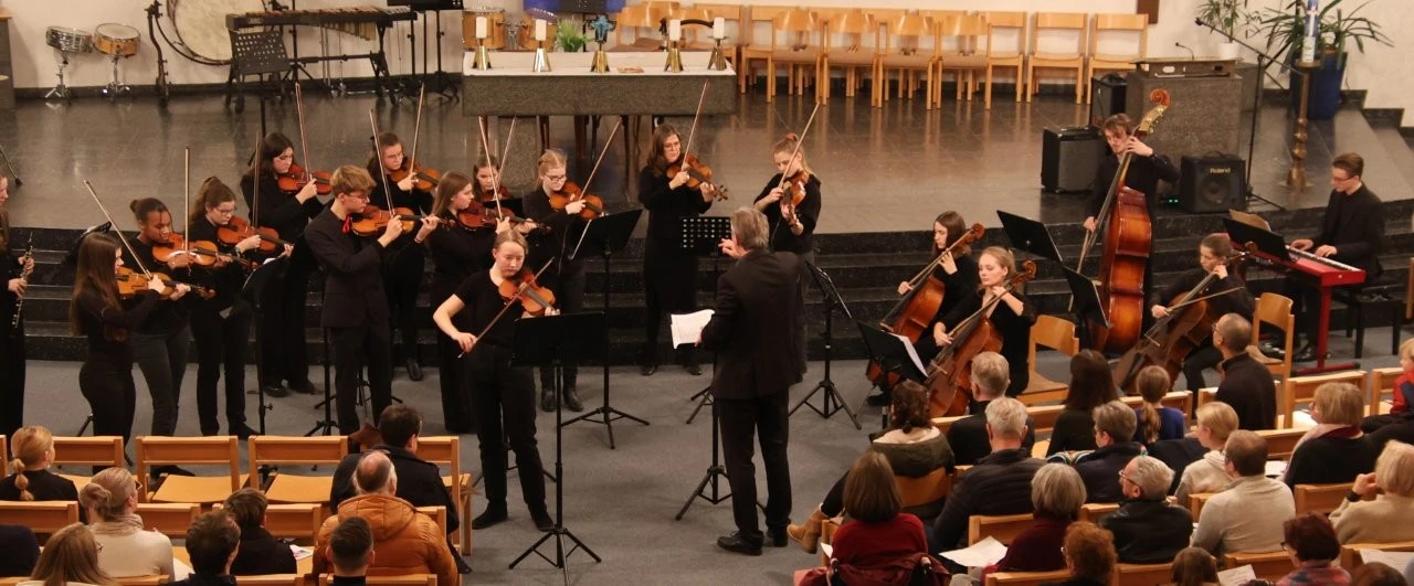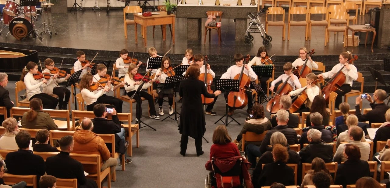 Für ein Glanzstück sorgte das Streichorchester (Leitung Ulrich Noss), das beim Händel-Jugendpreis 2024 einen Förderpreis erhielt und nun mit dem „Concerto grosso g-Moll von Arcangelo Corelli und der „Weihnachts-Pastorale“ (Cembalo Nick Wlasow) eine virtuose Leistung darbot. Auch mit dem „Adagio“ aus einem Violinkonzert von Bach (Solistin Solveig Sonntag) begeisterte das Orchester mit einem feinen Klangbild.