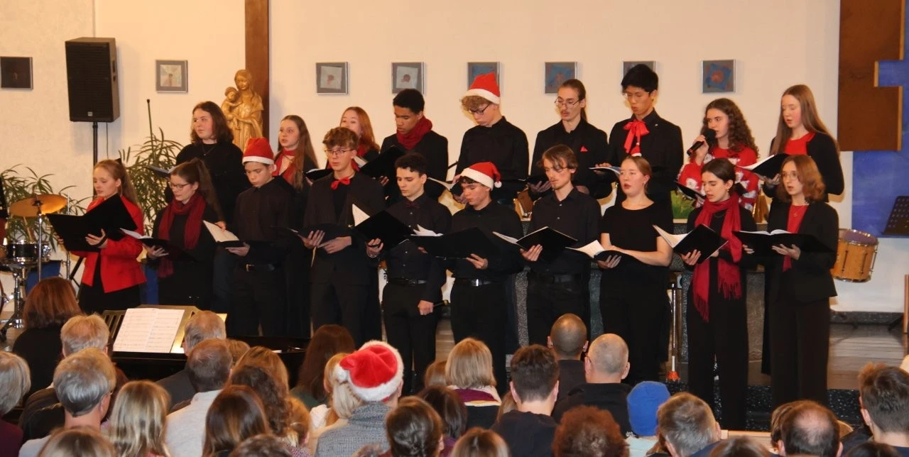 Doch im Stall von Bethlehem geschah genau das, dass die Welt inmitten von Not, Leid und Krieg für einen Moment anhielt. Denn es wurde jene Friedenshoffnung geboren, von dem über 100 Schüler des „Musik-Gymnasiums Lender“ in vielen Facetten ihren Traum von Weihnachten sangen, musizierten und spielten. Dabei schien tatsächlich die Zeit etwas still zu stehen. Denn die vielen Besucher in der Heimkirche durften auch mit dem modernen Krippenspiel „Wer kennt diesen Mann“ der Unterstufen-Theater-AG (Leitung Melanie Plasberg) in eine Welt eintauchen, in der viel von Hoffnung, Menschlichkeit und Sehnsucht nach Frieden anklang. Dafür bedankte sich Schulleiter Marco Cataldo bei allen Akteuren, die niveauvolle und klangschöne Impulse gaben, um das „Fest der Liebe nicht zu vergessen.“